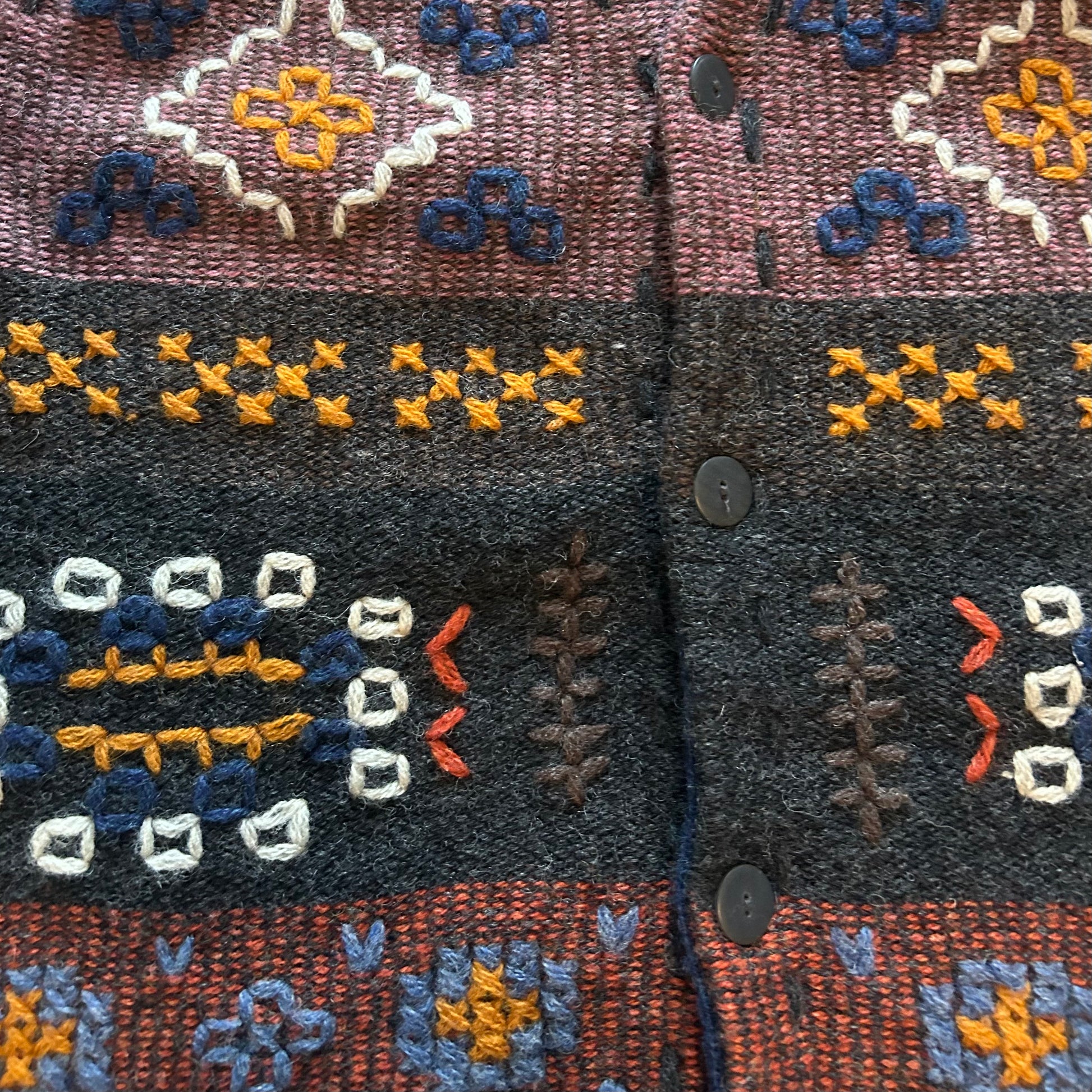 Gilet in lana 100% Shetland. Marca "S. Moritz". Ricamato a mano. Taglia non riportata.